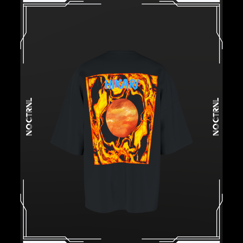 Ignite your style with the “HIKARI” Oversized Tee. Meaning “Light” or “Radiance” in Japanese, this design captures the raw, intense energy of a planet engulfed in a cosmic inferno, perfect for making a bold, fiery statement.